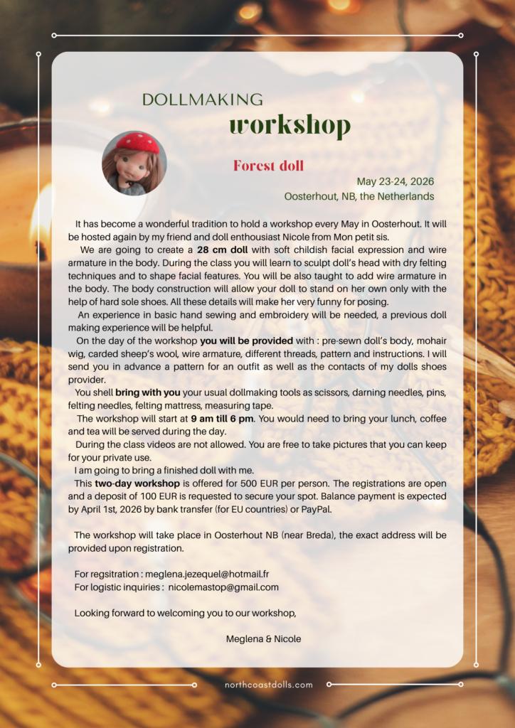 Home » workshops » Dollmaking workshop Forest doll – May 23&24, 2026Dollmaking workshop Forest doll – May 23&24, 2026 0